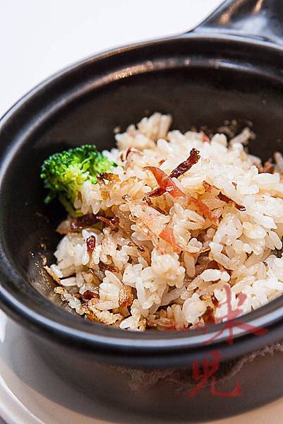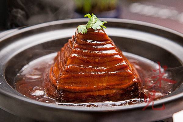 干鍋鹹燒白,320大洋。沒有甜燒白,所以點了鹹燒白,看起來和吃起來都有點像是現在時下流行的寶塔肉,也就是梅干扣肉的時尚版,差別在於「燒白」是會把五花肉炸到皺皺的再去做其他的處理,所以仔細看,那切得薄薄的豬肉皮上還有炸過的痕跡呢!傳統上鹹燒白裡頭塞得是芽菜,不過因為在台灣不易取得,所以這裡用的是梅干菜,吃起來當然和梅干扣肉很像囉!但是因為五花肉炸得較透,吃起來也較不肥膩。