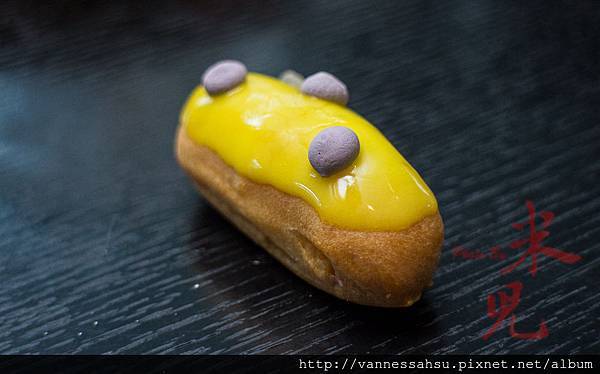 長相可愛的檸檬閃電泡芙,裡頭有酸香的檸檬奶油餡料,因為刨了檸檬皮增加香氣,整個在嘴裡就是檸檬味十足,喜歡吃酸的朋友千萬別錯過這款~~~