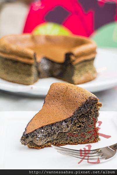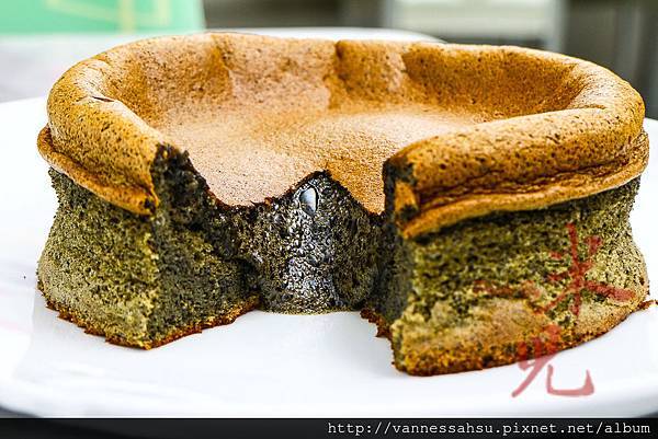 新口味芝麻蜂蜜半熟蛋糕,看起來黑呼呼的,但是香氣十足~