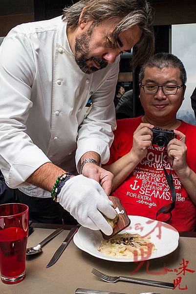 遠東香格里拉飯店幾乎每一年都會在這個季節推出白松露盛宴,為了好好處理這個貴森森的嬌客,還會特別請來歐洲米其林星級主廚來台客座,推出限量的白松露盛宴,今年請來的主廚是法籍的Philippe Leveille,他在北義的餐廳MiramontiL'altro至今已連續12年名列米其林二星,就連前任教宗本篤十六世都曾入座用餐!除了北義之外,他在香港中環還開了一家L'altro餐廳,開幕第一年就拿到2013港澳米其林一星!真的很厲害,所以加起來他總共也拿到了「三星」囉!