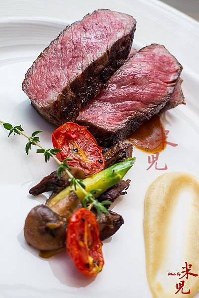 不過,這次的餐酒會中,特別把香檳茸融入菜色當中,很能吃出主廚的巧思,雖然酒力不怎麼好的米兒最後並沒有喝什麼酒,但是整體吃下來,仍然能吃出主廚扎實的功夫底子,從前菜開始,就把每道菜的調味、擺盤都做得十分到位,一餐吃下來,讓米兒和胡姊都很心滿意足!尤其是主菜的牛排,雖然只有小小二塊,但是從肉質的挑選、處理的手法到烹調熟度的拿捏都很得宜,已經很久沒吃到如此甜嫩多汁、柔軟可口的牛排囉!真的讓我想給主廚拍拍手!