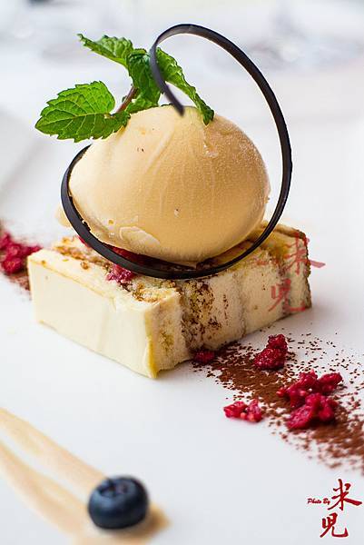 香檳蛋提拉米蘇附香檳蛋香草冰淇淋,提拉米蘇一定要放蛋黃才對味,但生蛋黃的品質關係到成品的好壞,而用了香檳蛋的提拉米蘇,吃起來自然是一等一的可口,與同樣加了香檳蛋的香草冰淇淋一起食用,哇~~~滿足到極點!