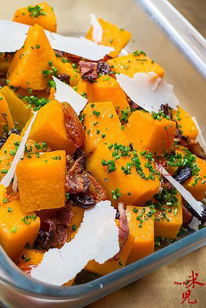 南瓜沙拉,光看這賣相就知道鬆軟好吃吧?南瓜配上鯷魚、起司和蝦夷蔥,吃起來和以往吃過的南瓜菜餚很不一樣!