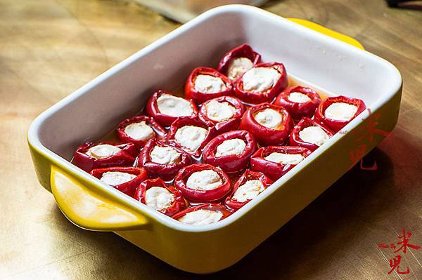 起司皮辣椒,這是用一種進口的辣椒皮裡鑲進起司做成的,是義大利人常吃的小菜,台北很少見,沒想到這裡有,很適合用來下酒喔!
