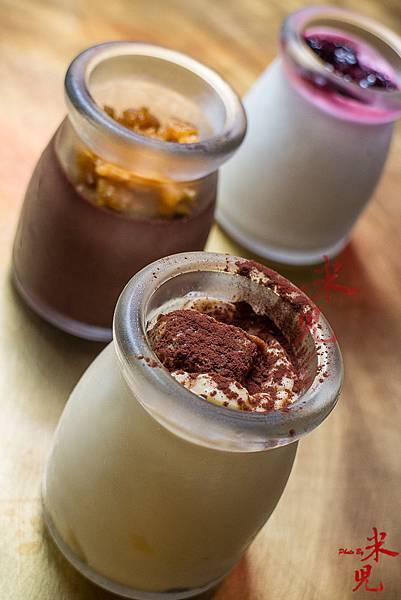 這裡的甜點也很不賴,最前面是提拉米蘇、中間是巧克力布丁,最後面是藍莓奶酪,都用可愛的玻璃瓶裝~
