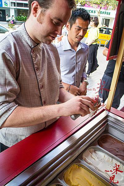 門口小車裡賣的是自製的義式冰淇淋,口味不少喔~~