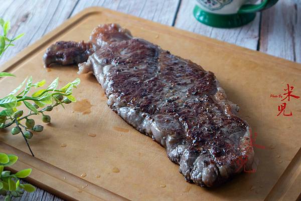 嘿!瞧瞧,煎出來的多漂亮!我最喜歡牛排表面的那層脆皮了!那是最美味的部分!