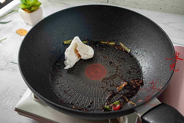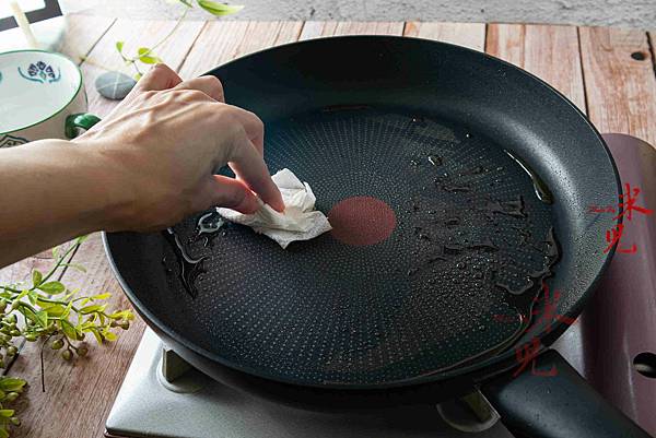 因為醬汁中有醬油又有糖,收汁到最後其實很容易黏在鍋底,但是不沾鍋的特性就是,用濕的廚房紙巾略擦一下,就可以清潔乾淨喔!當然用紙巾擦拭是我為了測試它的不沾效果啦,平常使用時,只需要用海棉加中性洗劑,輕抹幾下再沖水,就乾淨如新了。
