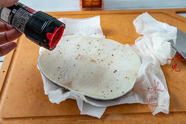 前幾天在好市多買到這種切片的圓鱈,一片的大小對我這種單身族群還算友好,所以這次就來做個乾煎圓鱈吧!把圓鱈兩面用廚房紙巾擦掉多餘水份。