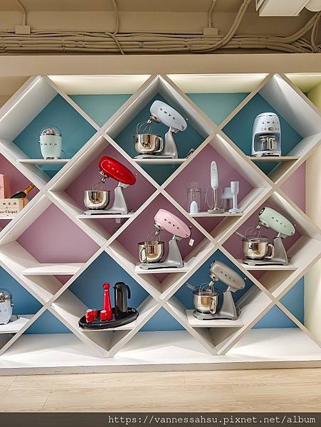 品硯美學門市裡還陳列著超多SMEG的美型家電,像是咖啡磨豆機、抬頭式攪拌器、手持式食物調理機、電熱水壺等等,實在真的好美喔!好想把它們全都帶回家呀·····